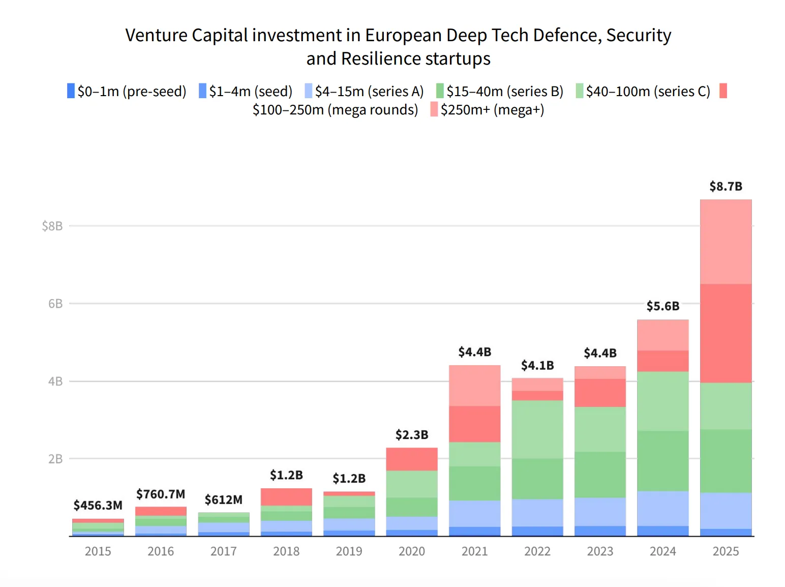 Since Russia’s attack on Ukraine in 2022, defence and sovereignty have been reverberating themes in Europe’s investment landscape. These are sectors that are gaining traction fast; in 2025, investors poured a record $8.7 billion into European deeptech startups, per Dealroom data.
