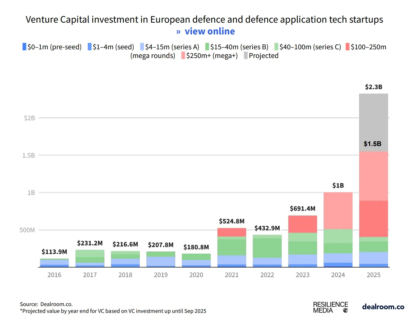 2025 was a banner year for VC funding into defence tech in Europe, with startups clinching over $1.5 billion in funding in the first three quarters of the year — far eclipsing the $1 billion raised in 2024 alone.